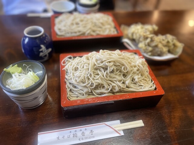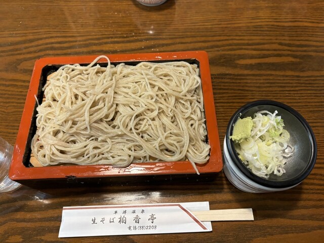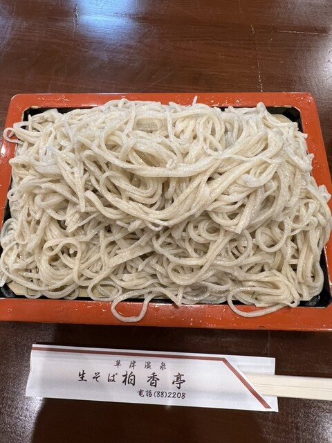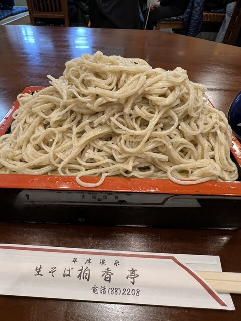 草津温泉街の西の河原通りには蕎麦屋がいくつかある。その中で最も有名なのがこちら柏香亭。開店15分前に行くと平日で雨が降っていたにも関わらず3番手。