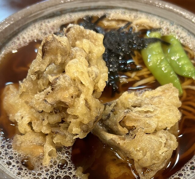 他の方と注文を見ると、かけ蕎麦+まいたけ天の注文というパターンもあるようで、その方がまいたけ天が多く楽しめます。
