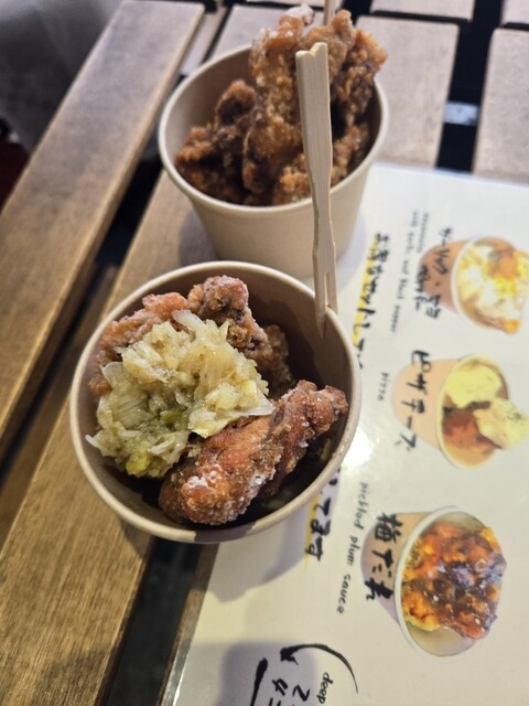 一階が唐揚げ屋さん、二階がお好み焼屋さんって感じね。