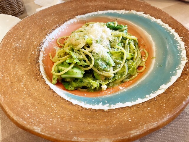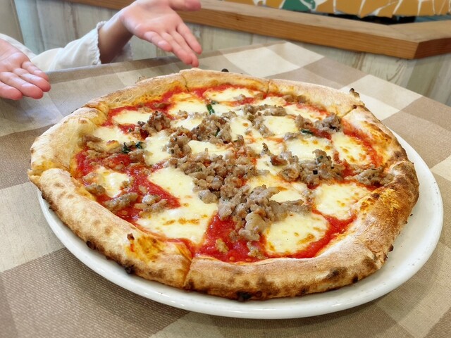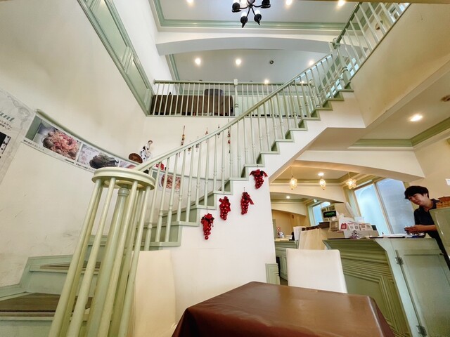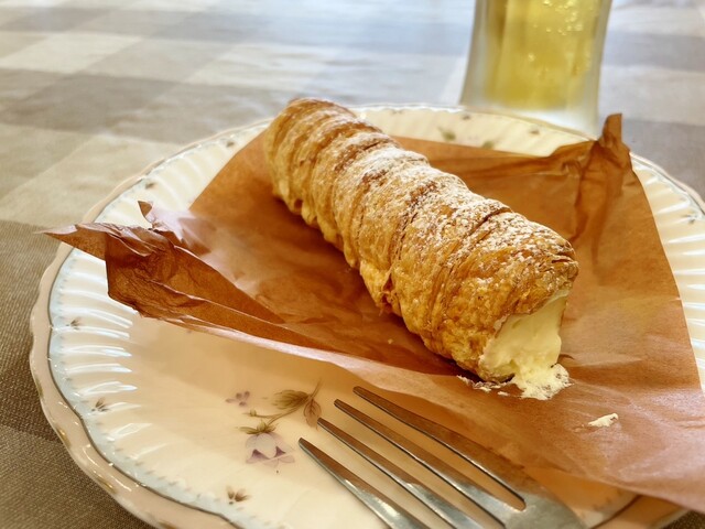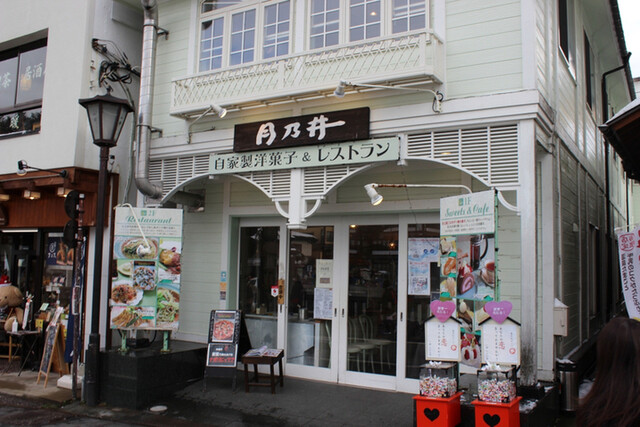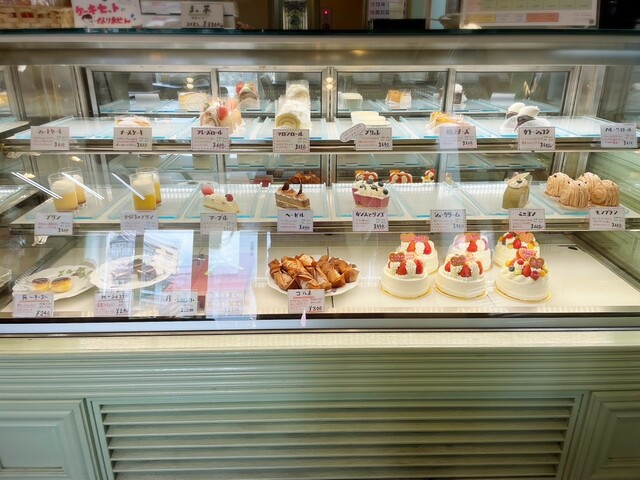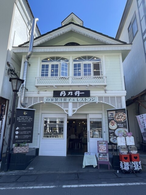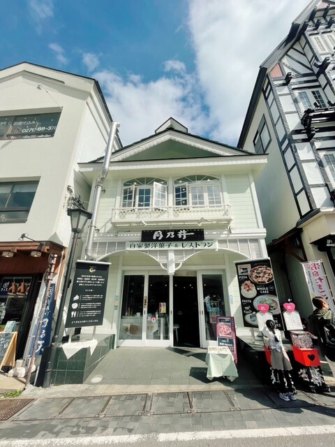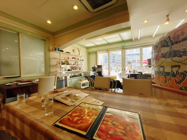 洒落た洋風の外観に、内装はモスグリーンと白を基調としたいかにも洋菓子店然とした佇まいですが、入ってすぐにピザ窯とアルコール類のサーバーが設置してあり、ちょっとコンセプトが混沌としています(昔からの観光地っぽいと言えばそうかも。...