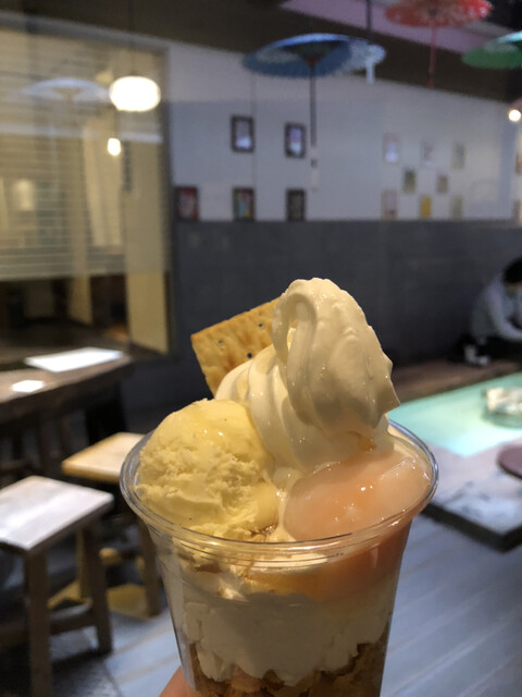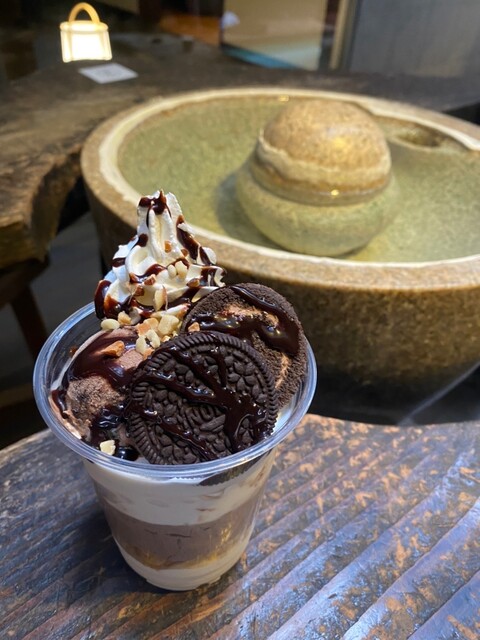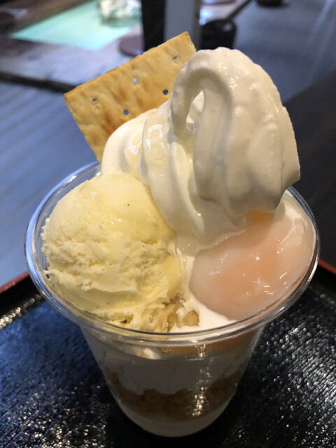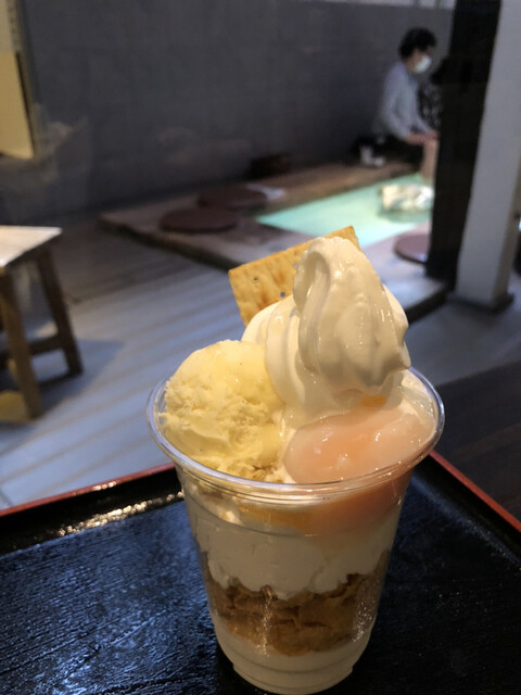 足湯カフェはテレビで紹介「はちみつ温玉パフェ」、店内は「上州プレミアム牛丼」がおすすめ