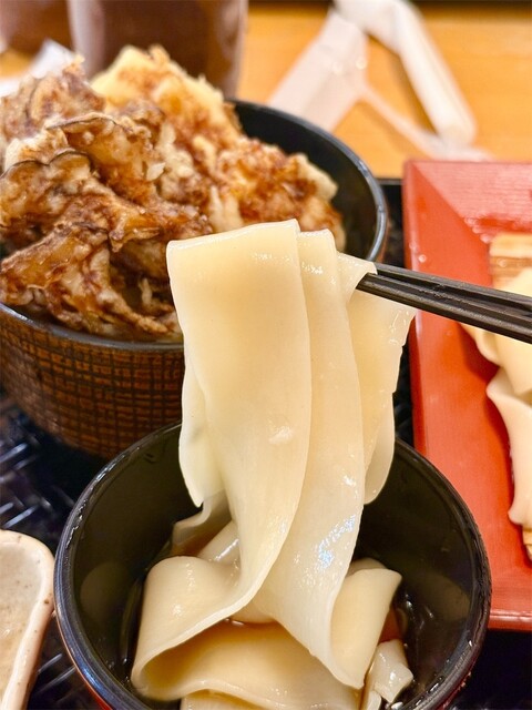 群馬に来た際にぜひ味わいたいと思っていた「ひもかわうどん」を求め、まつもとを訪問した。 開店前に店前の記帳台に名前を書き、11時の開店と同時に入店することができた。店内は清潔感が... 詳細を見る