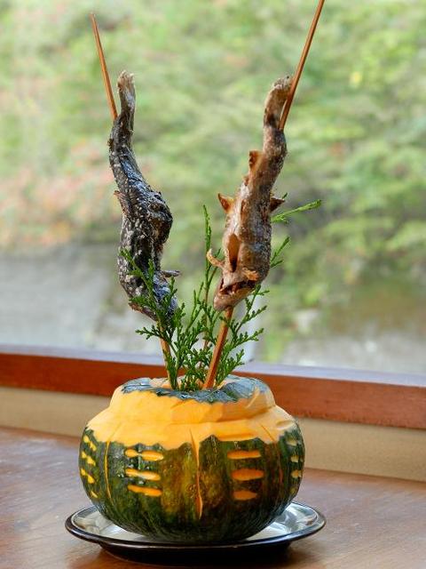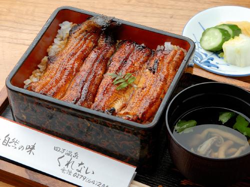 名物!四万温泉で蒸し上げた湯むし鰻重、やまめなどの川魚の塩焼き魚籠盛り、温泉雑炊などお召し上がり頂けます。 |