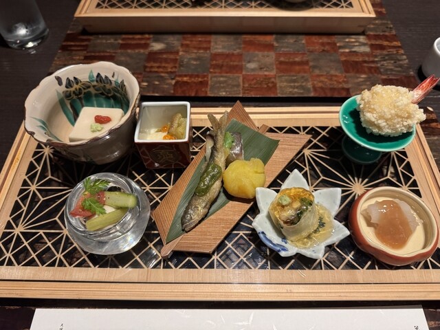 料理はとっても素晴らしい。出汁の旨み、美味しさが滲み出ており、さらにもうひと工夫・一手間してある。一品毎に創意工夫が良く解る 前日と異なる懐石メニューを楽しませてもらいました 【夕食 懐石コース「卯月」】 □前菜 穀雨の頃 □御碗 伊勢海老 □鮮 旬魚盛り合わせ □蓋物 じゃが芋万十 ... 詳細を見る