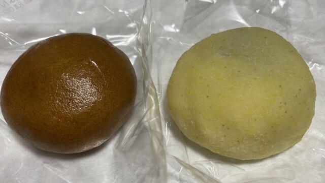 群馬県沢渡温泉の中屋饅頭店にてキビ大福と温泉饅頭を頂きます。