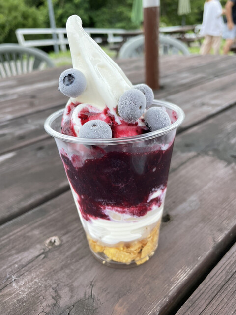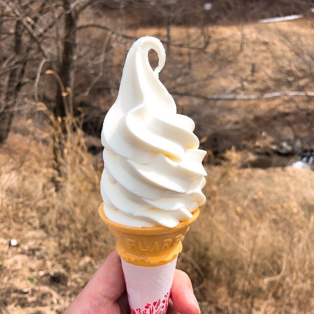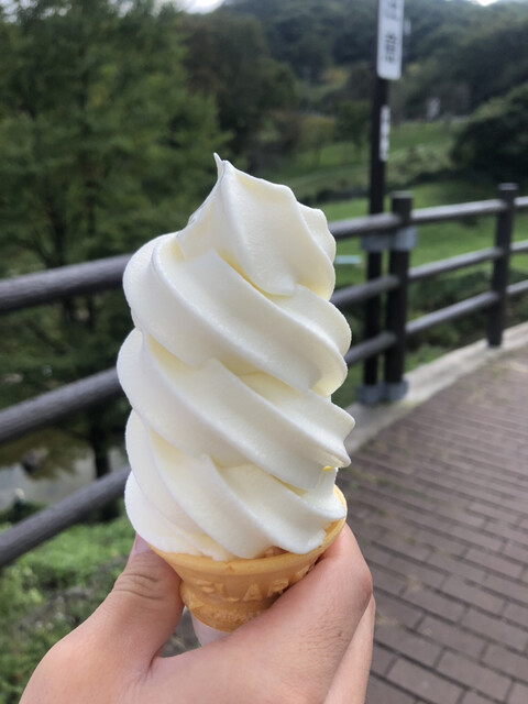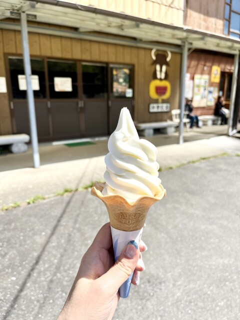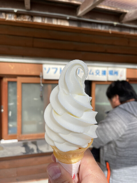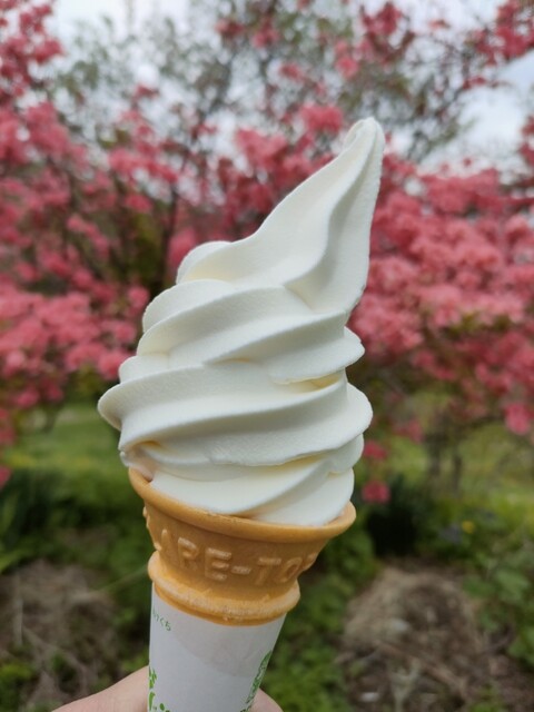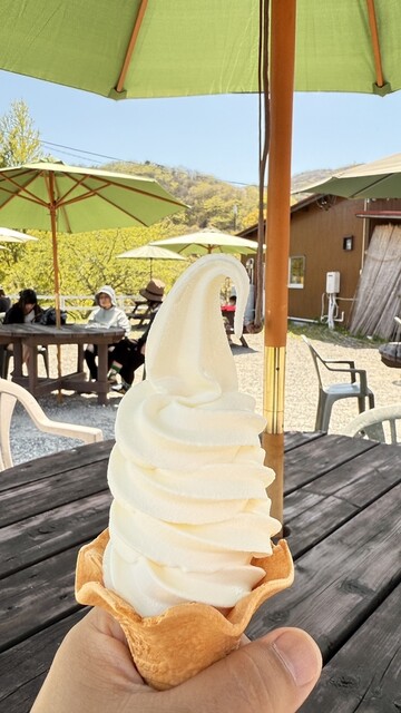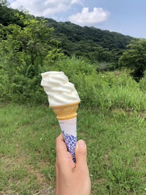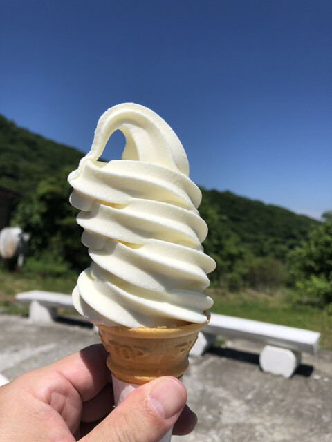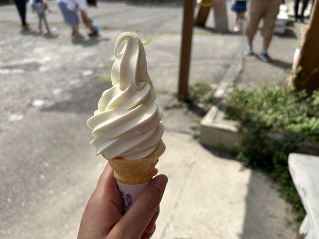 近くのキャンプ場の方曰く、このあたりでは一番大きい牧場とのことで、ソフトクリームを食べにうかがいました。