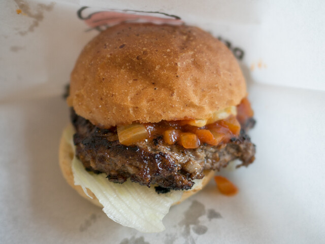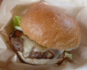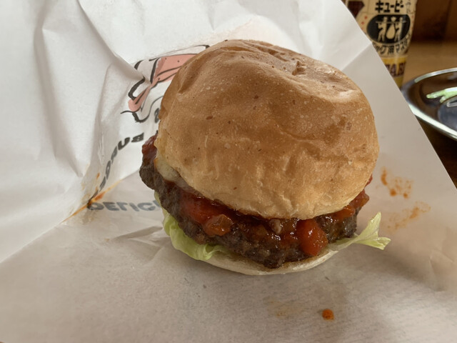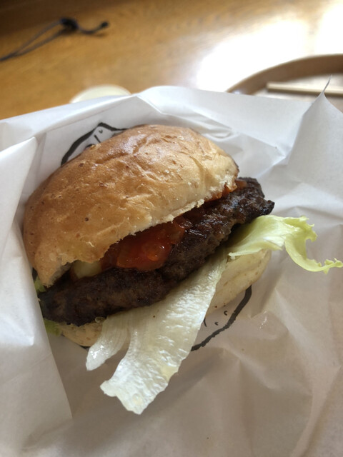 手作り感満載の照り焼きチーズハンバーガーをいただきました。一口目で流れ出す肉汁はなんともワイルドなハンバーガーでした。マスタードを掛けるとさらにうまくなります。