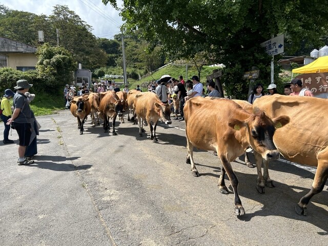 ジャージー牛乳の濃厚ソフトを食べながら、ジャージー牛と間近で触れ合う