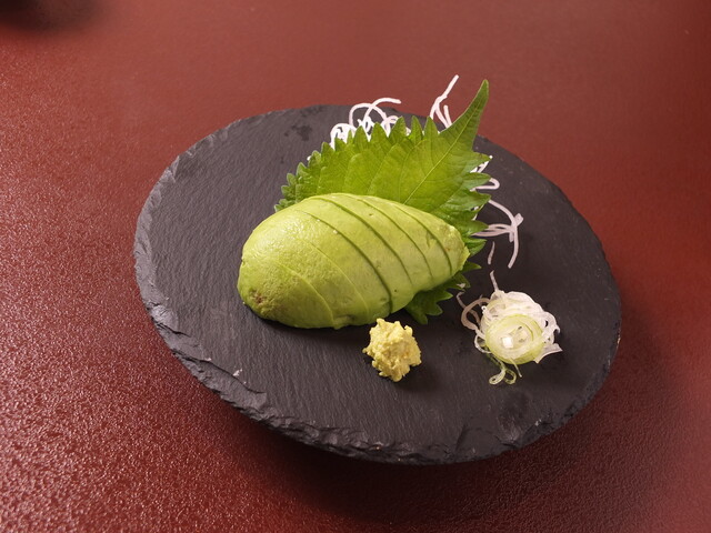 海苔の香りがほんのりと漂い、〆鯖の脂の旨みが口いっぱいに広がります。新生姜のシャキッとしたアクセントが、その深い...