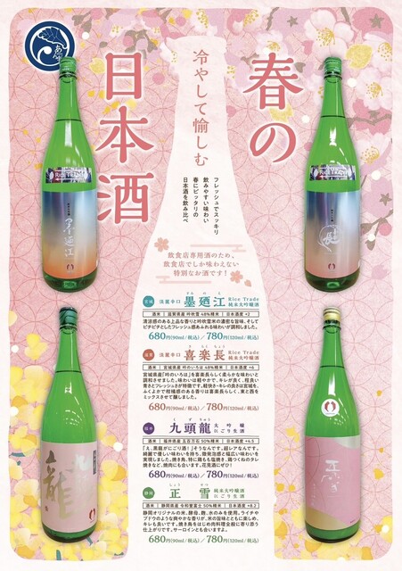 | ドリンク | 日本酒あり、焼酎あり、ワインあり、カクテルあり、日本酒にこだわる、焼酎にこだわる、ワインにこだわる |