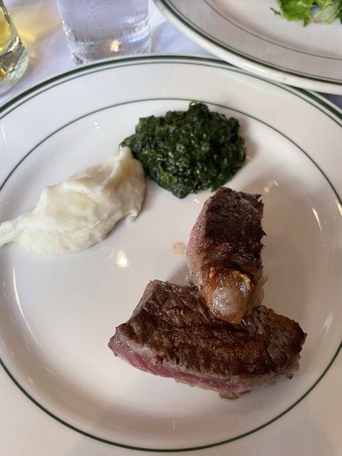 ちゃんと各自のお皿にまでお肉や付け合わせのマッシュポテトとほうれん草を取り分けていただけて、シェアでほんとによかったです。
