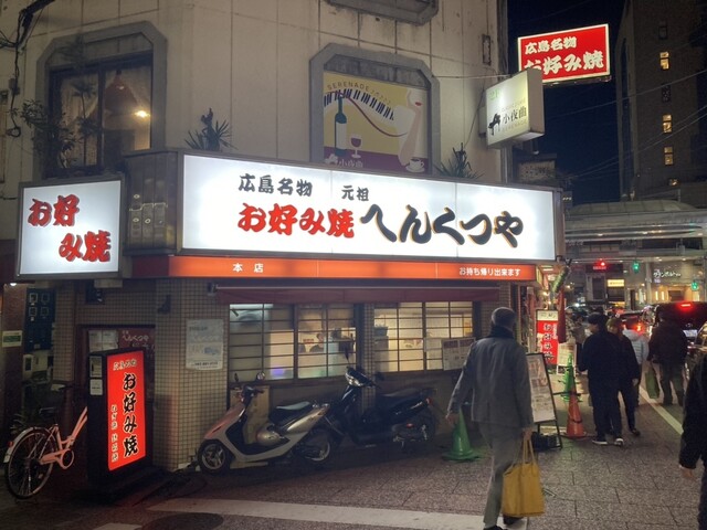 広島出張の仕事終わり、お好み焼きの香りに誘われて新天地にある「元祖へんくつや 本店」へ。昭和22年創業という歴史を感じさせる看板と、鉄板を囲む活気あふれる雰囲気に期待が高まります。