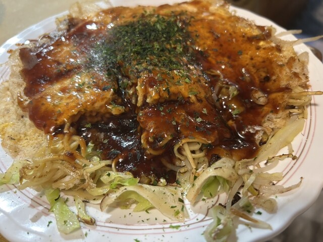 繫華街の近くで、夜遅くまでやっている、お好み焼き屋さんです。 昼から開いているので、昼食でも飲んだ後でも利用出来ます。