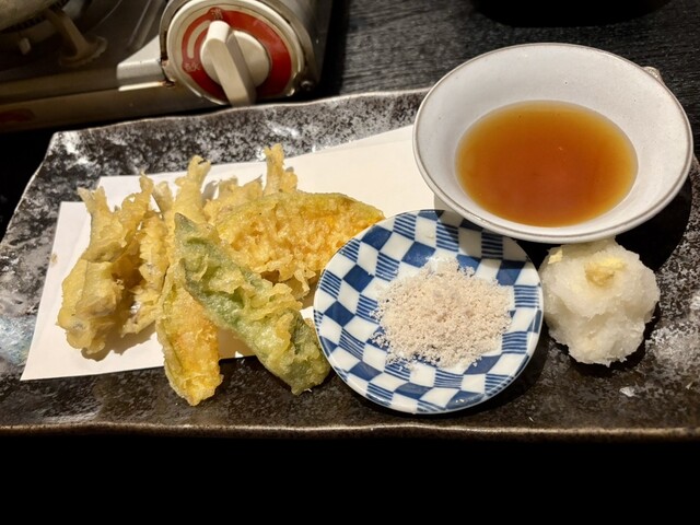 すると間髪入れずに、刺し身4種盛り合わせ、旬野菜サラダ、とうもろこしの天ぷらが立て続けに到着。新鮮な地物の魚の味わいを楽しみながらジョッキのビールを飲み切...