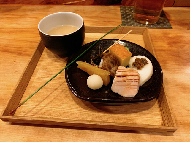 和牛ホルモン味噌煮込み(700円) 殻付き焼き牡蠣(500円) 舞茸と白海老のかき揚げ(900円) 晩ごはんで訪問。予約して伺いカウンター席の最奥に通していただく。まずは... 詳細を見る