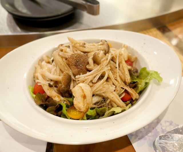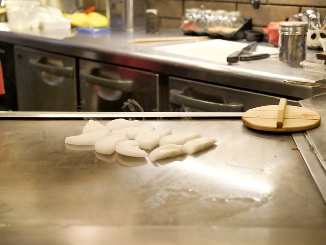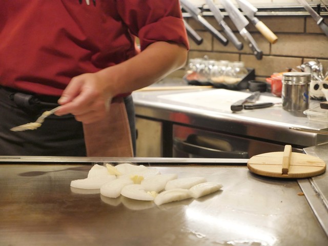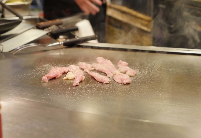 仕上げに鉄板の上でジュワジュワッと音を立てたソースをかけちゃいます☆