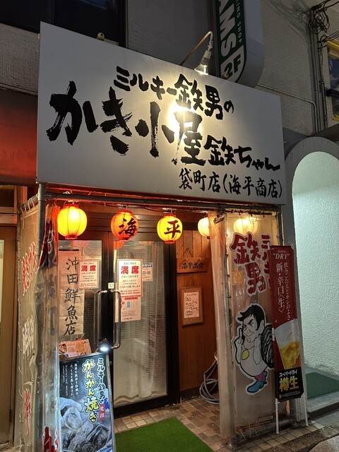 大人気「かき小屋宇品店」直系の「かき小屋袋町店(海平商店)」は、広島の海の幸を堪能できる海鮮居酒屋。牡蠣の蒸し焼きグルメ「ミルキー鉄男のがんがん焼き」をはじめ豊富な牡蠣メニューをご用意!草津市場 から毎日仕入れる新鮮な魚介類は絶品。2階には最大24名様(貸切も可能)まで利用できるお座敷も完備。瀬戸内海鮮を楽しむならここ!県外からのお客様も大歓迎です。