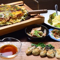 お店の一押しメニューは、鉄板焼きならではのジューシーな焼き上がりのふわふわ「チーズオムレツ」。その他にも「お好み焼き」や「カキのバター焼き」など、お酒にあう美味しい料理を存分に堪能できます。