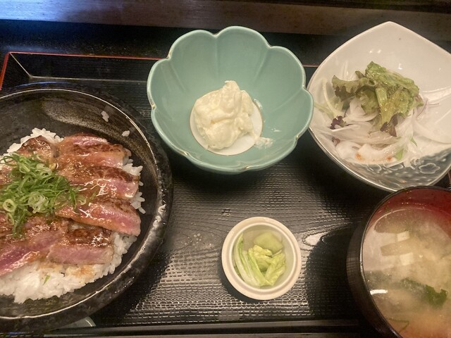 入口の看板に「たかふみ牛ステーキ丼800円」とあったので入ってみる。