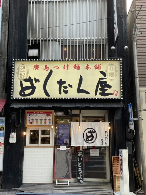 広島市中区新天地・〈平和記念公園〉東側の八丁堀地区、“中央通り”と“うらぶくろ商店街”が交わる「新天地交差点」そばのビル1階にあるご当地グルメの「広島つけ麺」専門店《ばくだん屋》。 「広島つけ麺」は、中華麺にチャーシューや茹でキャベツ等が添えられ、辛味を付けた醤油ダレでいただく冷製つけ麺で、昭和2... 詳細を見る