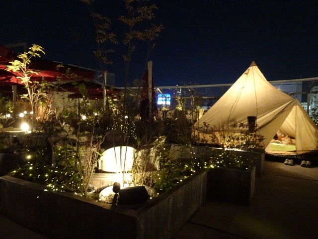 お昼は開放的、夜は幻想的なガーデンテラス席