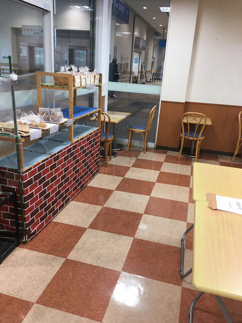 広島の宇品港から四国松山観光港へ渡ります。しばし乗船前のひと時、飲食店数店はターミナルビル内にあるものの、時間が読みづらいのでテイクアウトを探します。普通の弁当も見かけましたが、こちらのお店がリーズナブルな雰囲気。インストアベーカリーのようで、店舗奥にはパン焼窯が見えます。