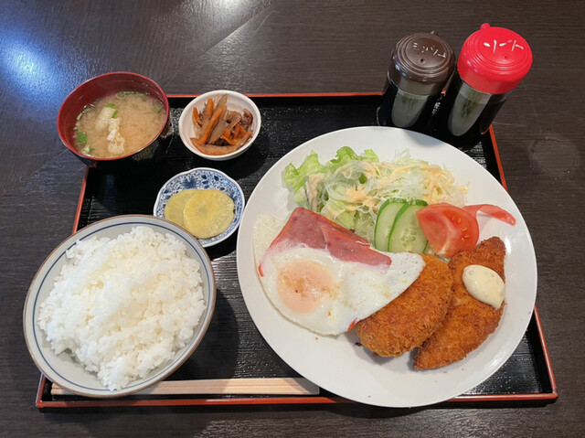 お昼を食べに行きました。 食べたのは店名のついているSOS定食¥700です。 ・SOS定食 ¥700 内容は、白身魚のフライ、コロッケ、ハムエッグ、野菜サラダ、小鉢(ごぼうの... 詳細を見る