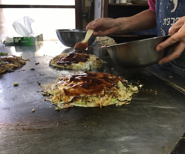 オタフクソースが、お好み焼き用ソースを手掛けたのは1952年。(昭和27年) ここが開店したのが1957年。(昭和32年) ご夫婦で始めたが、お好み焼きはもっぱら奥さんが焼き、... 続きを読む»