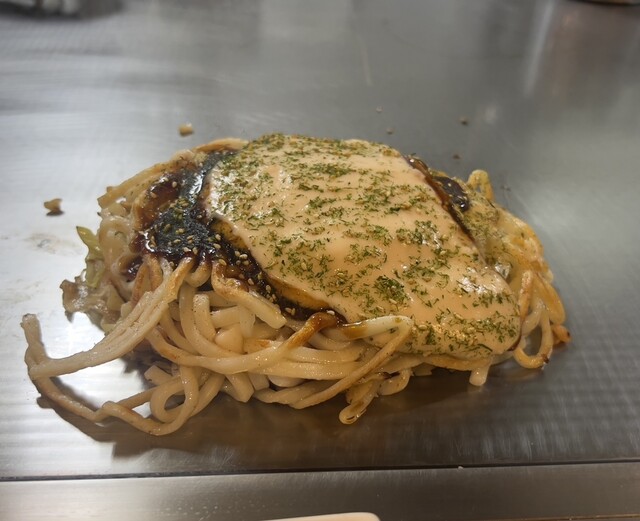 〆にお好み焼きホワイトソースうどん玉で。
