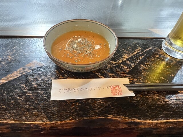お通しで人参のスープ。