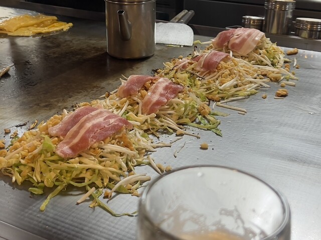 目の前で焼かれる鉄板焼きやお好み焼きに期待。