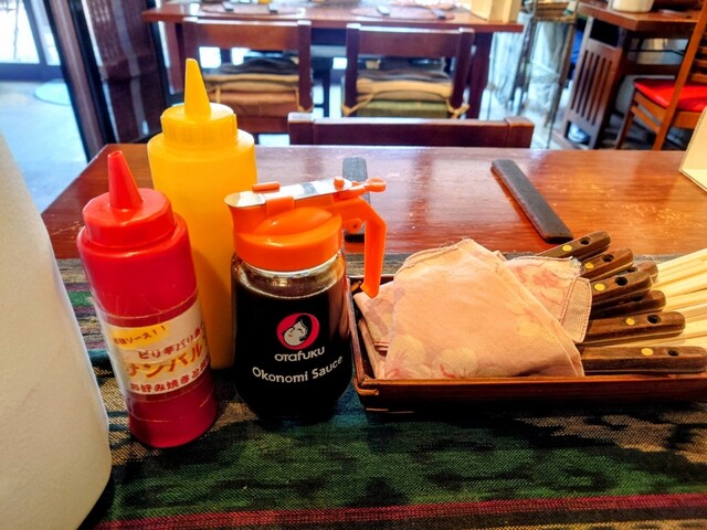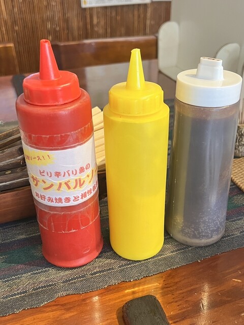 お好み焼きはジュージュー焼いたまま、鉄板で召し上がれます。また、店内では鰹節や紅生姜、さらにはマヨネーズやバリ島の調味料(独特の甘みとピリ辛がマッチしたサンバルソース)まで無料でご使用いただけます。素材・焼き方にこだわり当店でしか味わえないお好み焼きの層をお楽しみください!!