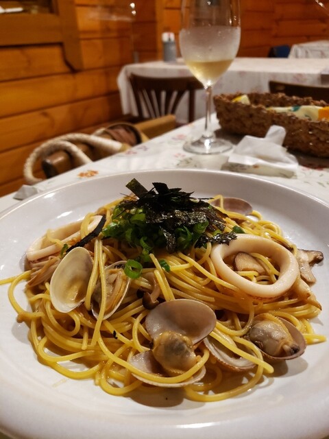 行ってみたかった南原にあるお店。 窓際の席に案内されてメニューを拝見。 セットではなく単品で注文。 『いか入り イカスミ和え(1045円)』 ガーリックバゲット... 詳細を見る