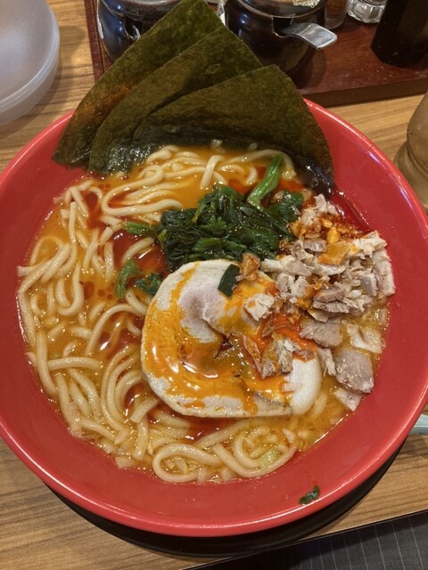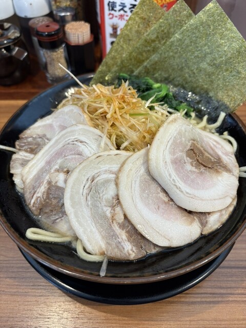 祇園イオンで買い物した帰り寄りました。駐車場は店正面よりも裏の方が止めやすいと思います。 店内入ってすぐの券売機をポチり。 『ベジタブル家系 麺有り(950円)』 『トッ... 詳細を見る