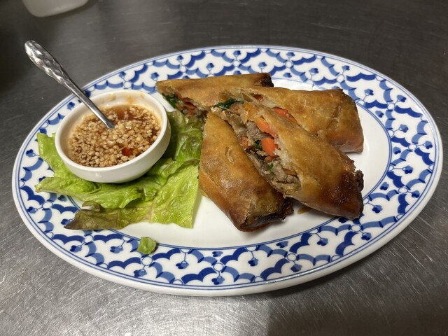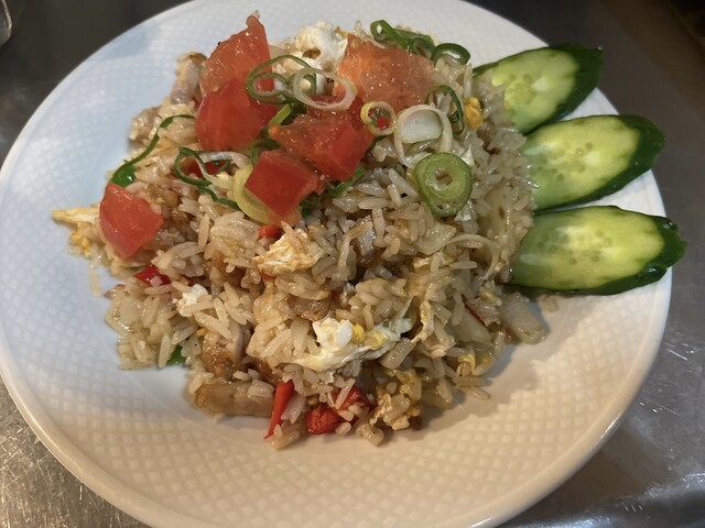 エスニックなランチが食べたくて伺いました。 メニューを考えている際に隣の席に運ばれてきたパイナップルの器に入ったチャーハンが気になり注文。 パイナップルチャーハンのようで、具材にも使われていました。初めての味でしたが、甘みがご飯とマッチして私は大好きでした。 さつま揚げのようなものもほんの... 詳細を見る