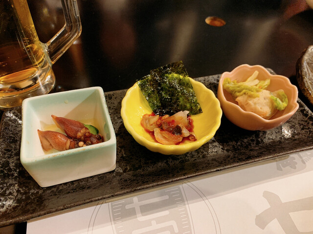 七宝丸満喫コース(5,500円) 会食で訪問。予約して伺い店舗のある二階にエレベーターで昇り、最奥のテーブル席に案内いただく。 飲み放題付きコースのため着席と同時に生ビール... 詳細を見る