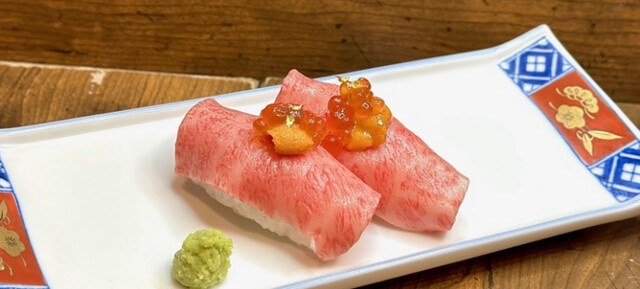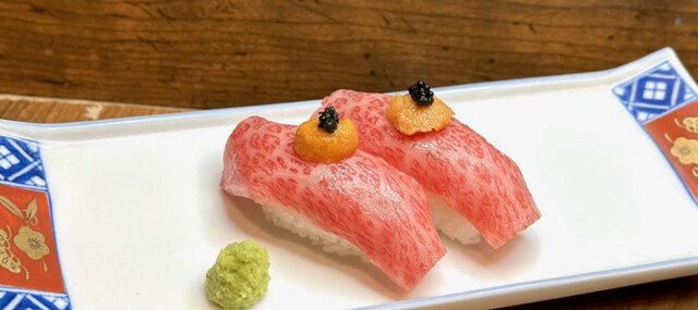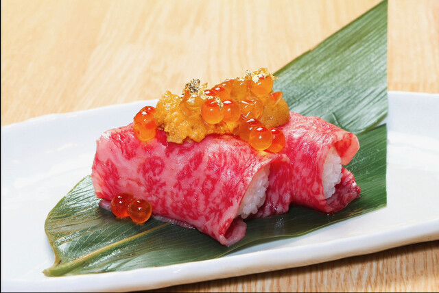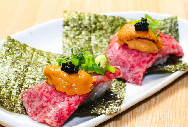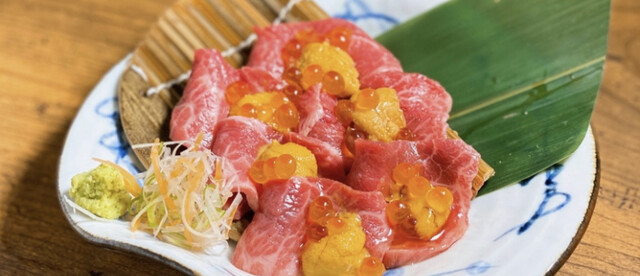 黒毛和牛赤身のウニくら刺し (by お店)