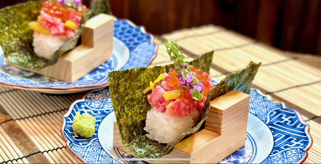 ともさんかくのトロたく手巻き (by お店)