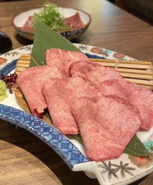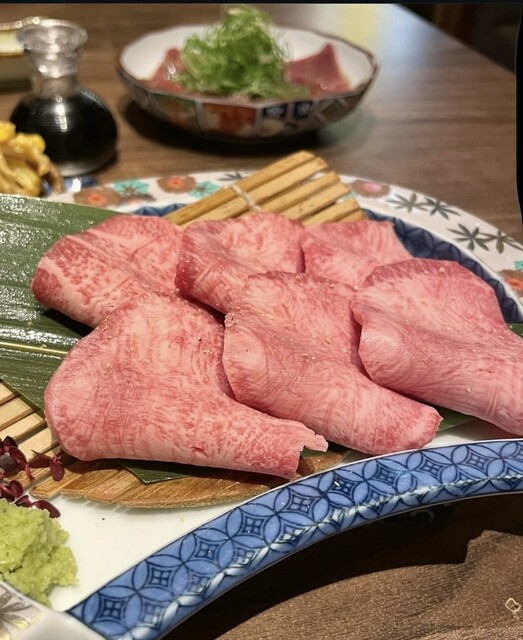 そして、テーブルに運ばれた特上タン。あのピンク色の輝き、繊維に沿って丁寧にカットされたその姿は、もはや芸術品。厚すぎず薄すぎず、焼き加減の妙を楽しむには絶妙な厚みで、七輪の上で踊る様子は、まさに“旨味の舞”。噛み締めた瞬間にジュワっと広がる肉汁と、舌に触れたときのしなやかな歯ざわり、そのすべてが計算し尽くされた一枚でした。