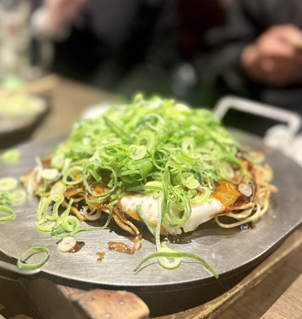 広島県産“宝島ねぎ”使用。ネギの甘みと香りをお好み焼きで!