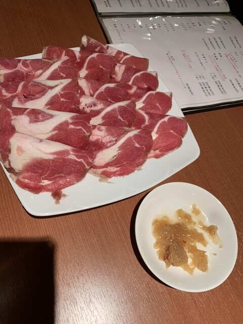 ※豚肉、牛肉、ラム、ソーセージ、野菜盛、大拉皮、ウーロン茶、ジャスミン茶