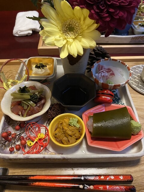 お客様との人数多めの会食で利用。こだわりの和食と美味しいお酒がいただけるお店。一人ずつ内容の異なる切り花がそれぞれの八寸を飾るという演出に最初から場が華やぐ。お箸も色とりどりの中から選ぶことができる。 食材は広島に限定せず、北海道など全国から良いものを取り寄せている感じ。引算という店名どおり、... 詳細を見る