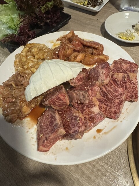友人のおススメでこちらのお店へ。お店は奥行きがけっこうありました 座敷席がけっこう広かったので、10~20人でも使えそうです 特選三種盛り(2800円)【上カルビ、上ロース、特選ヒレ】 …ヒレはかなり厚めでした。カルビ、ロースは柔らかくて美味しかったです コーネ(800円) …甘味を感じるお肉でした ホルモン 小腸 (900円) …口に含むと、ぷりっぷりでとろけていきます。かなり... 詳細を見る
