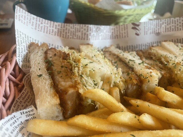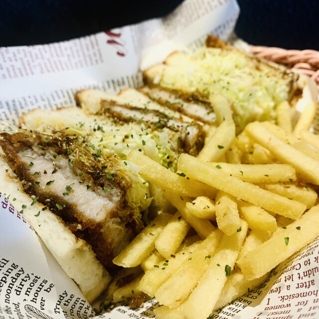 カツサンドにフライドポテトとドリンクが付きます。