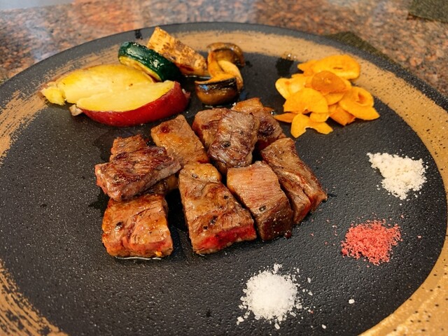 落ち着いた雰囲気の店内で、上質の素材を盛り込んだステーキ・新鮮な魚介類のコースをお届けします。焼き手の手さばきと共に鉄板焼の醍醐味をお楽しみください。シェフが厳選する銘柄牛も取り扱っております。また、種類豊富なワインやジャパニーズウイスキーも取り揃え、鉄板焼とのマリアージュをお楽しみいただけます。