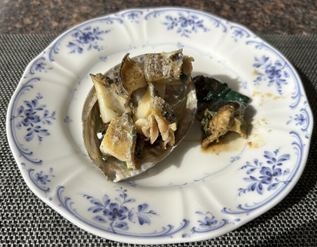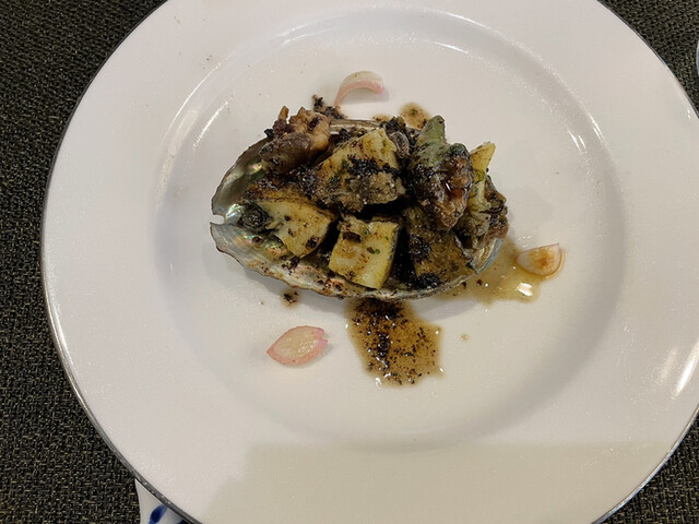 「蝦夷鮑と国産牛ランチ」とシャンパン、赤ワインをいただきま...