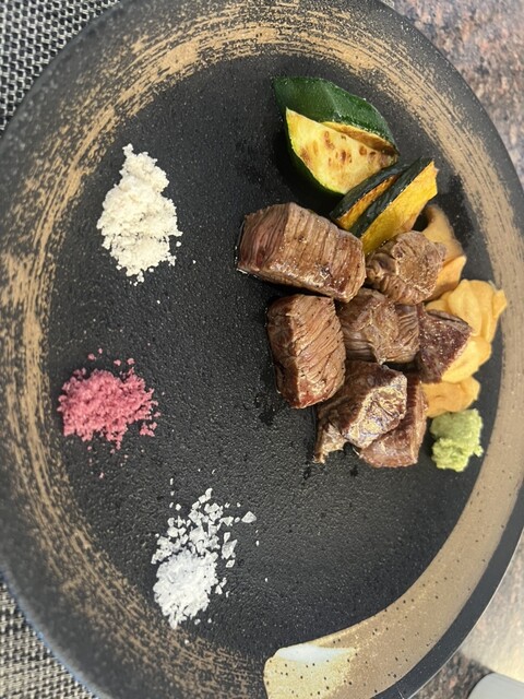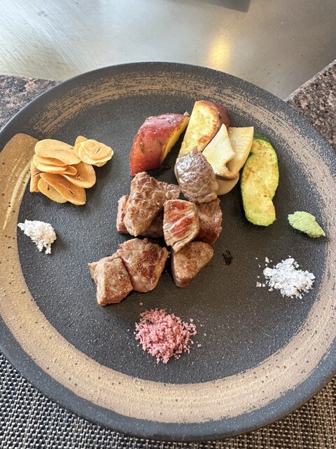 ホテル内のレストランなので味は格別ですが、目の前で焼いてくださるシェフとの会話もまた、コースを完成させる要素の一つでもあると改めて感じさせていただく機会となり、素敵な時間とお食事をいただきました。