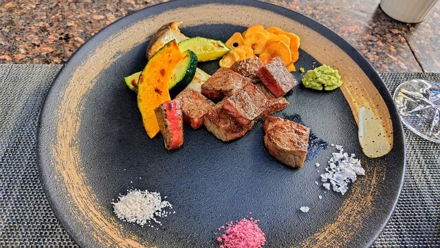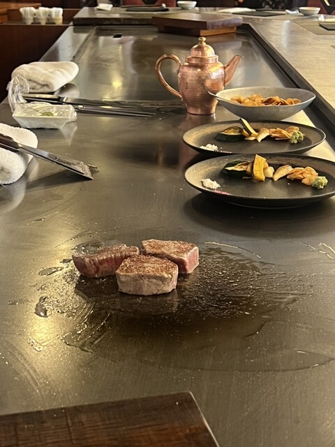 最初には鮑、次に野菜、広島和牛、そしてロブスターの鉄板焼きを楽しみました。赤ワインから白ワインへと移り変わる中で、料理の味わいも抜群です。ここでは日本一の食材を堪能できますよ♪ もしメイドインジャパン...