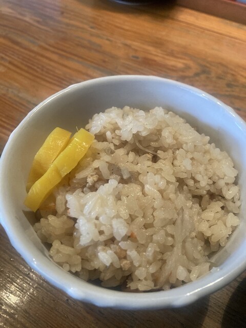 2.3分で炊き込みご飯と小鉢、みそ汁が到着。...