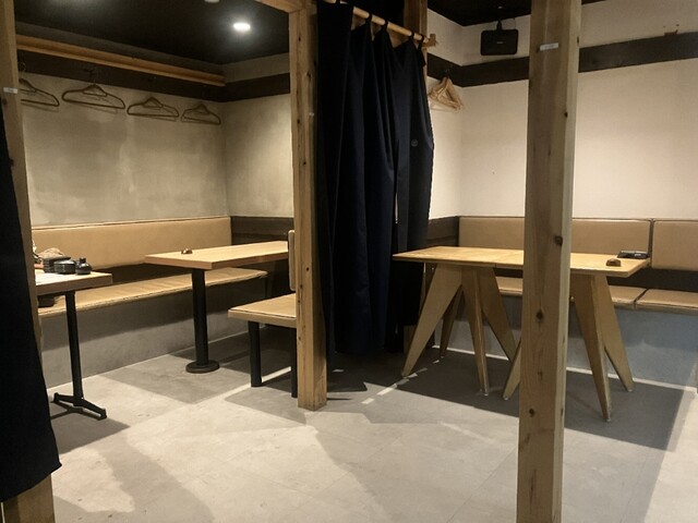完全個室があるのかは分からず?我々はテーブル席、回りの席もテーブル席なのですが、ロールスクリーンの仕切りで目線を遮る感じで半個室とかではありません。